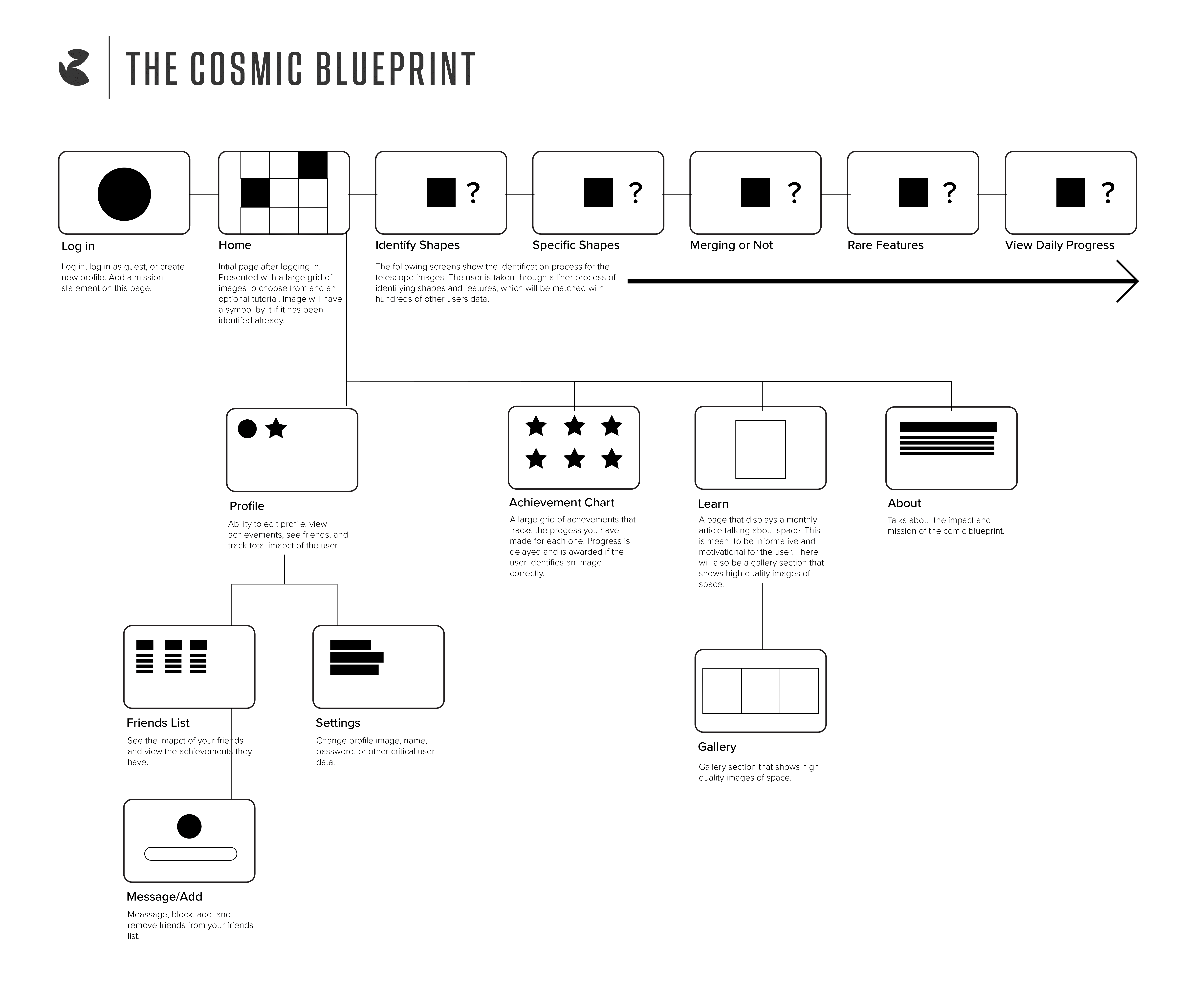 The crowdsourced astronomy app, The Cosmic Blueprint, is a redesign of the popular website Galaxy Zoo. The Cosmic Blueprint has greater consideration for clarity, accessibility, and human motivation. It is important to design the app in such a way that the user is incentivized and motivated to identify as many photos as possible, as having the scientist do this process would take significantly more time.